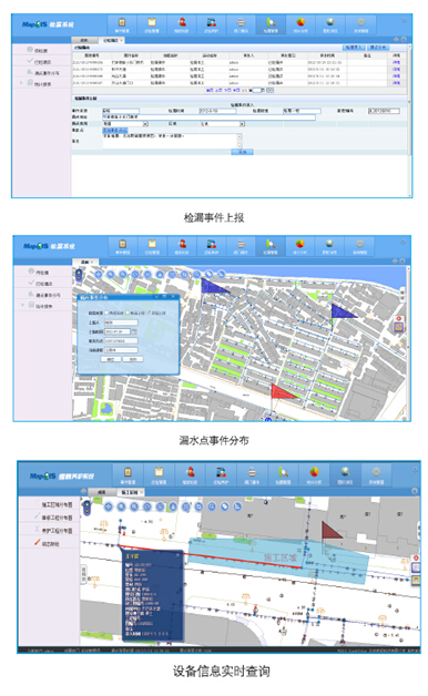 能夠?qū)⒀矙z、檢漏或報(bào)漏事件進(jìn)行圖標(biāo)可視化,快速索引查看相應(yīng)漏水點(diǎn)的發(fā)現(xiàn)時(shí)間、地點(diǎn)、原因、漏水量及管網(wǎng)屬性信息。