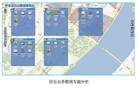 供水綜合運(yùn)營平臺通過共享服務(wù)平臺將供水GIS系統(tǒng)與各業(yè)務(wù)系統(tǒng)進(jìn)行集成,實(shí)現(xiàn)系統(tǒng)的信息交互與共享。通過供水管網(wǎng)GIS數(shù)據(jù)和各業(yè)務(wù)數(shù)據(jù)的整合,可以進(jìn)行跨業(yè)務(wù)系統(tǒng)的綜合分析,實(shí)現(xiàn)供水企業(yè)宏觀層面的綜合運(yùn)營監(jiān)管、調(diào)度指揮決策,從而提升供水企業(yè)的綜合管理效率。